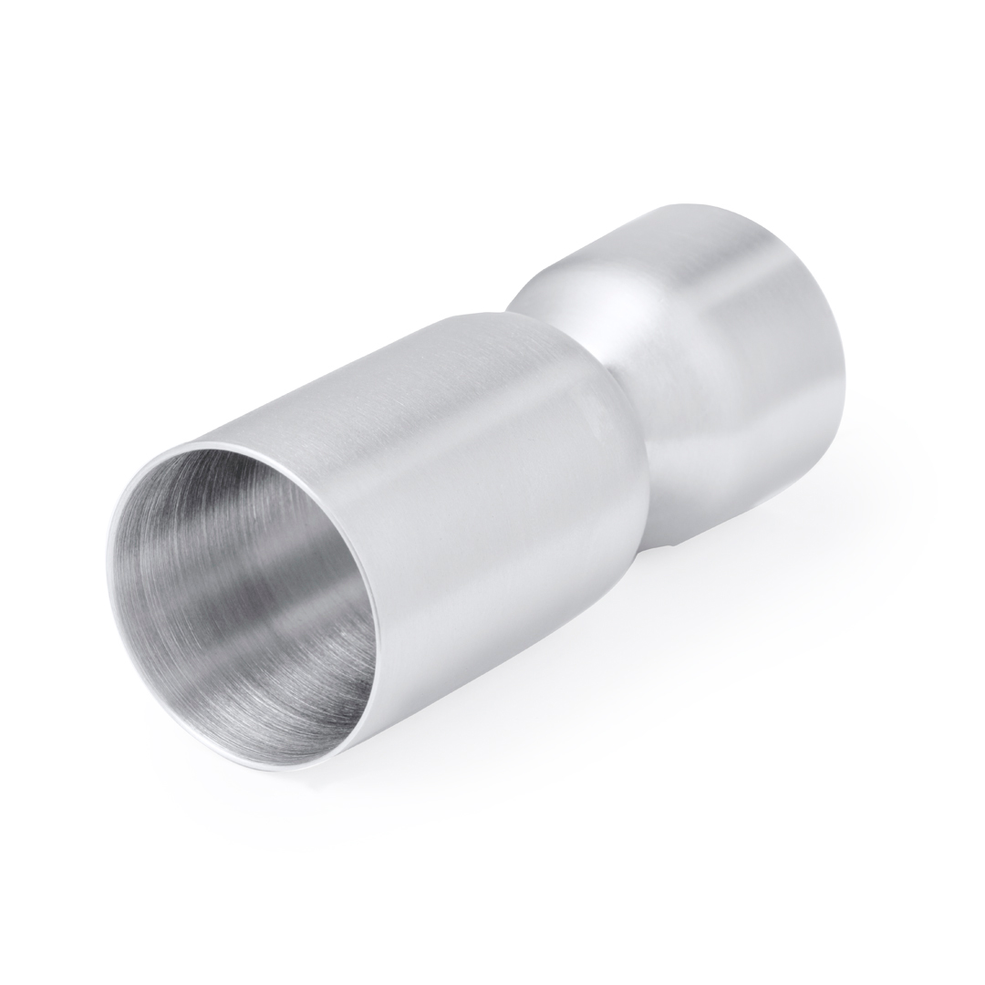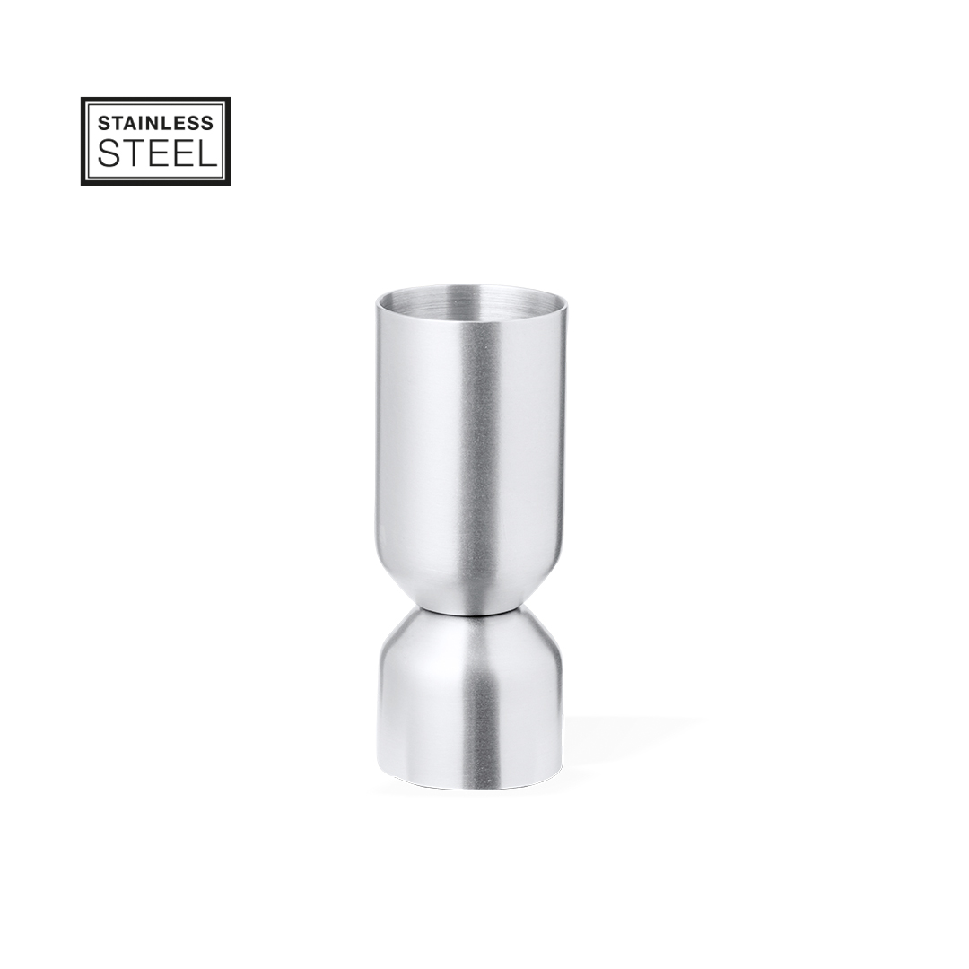 Medidor de bebidas em aço inoxidável de acabamento mate. Desenhado especialmente para gravação a laser e apresentado numa caixa de design kraft.